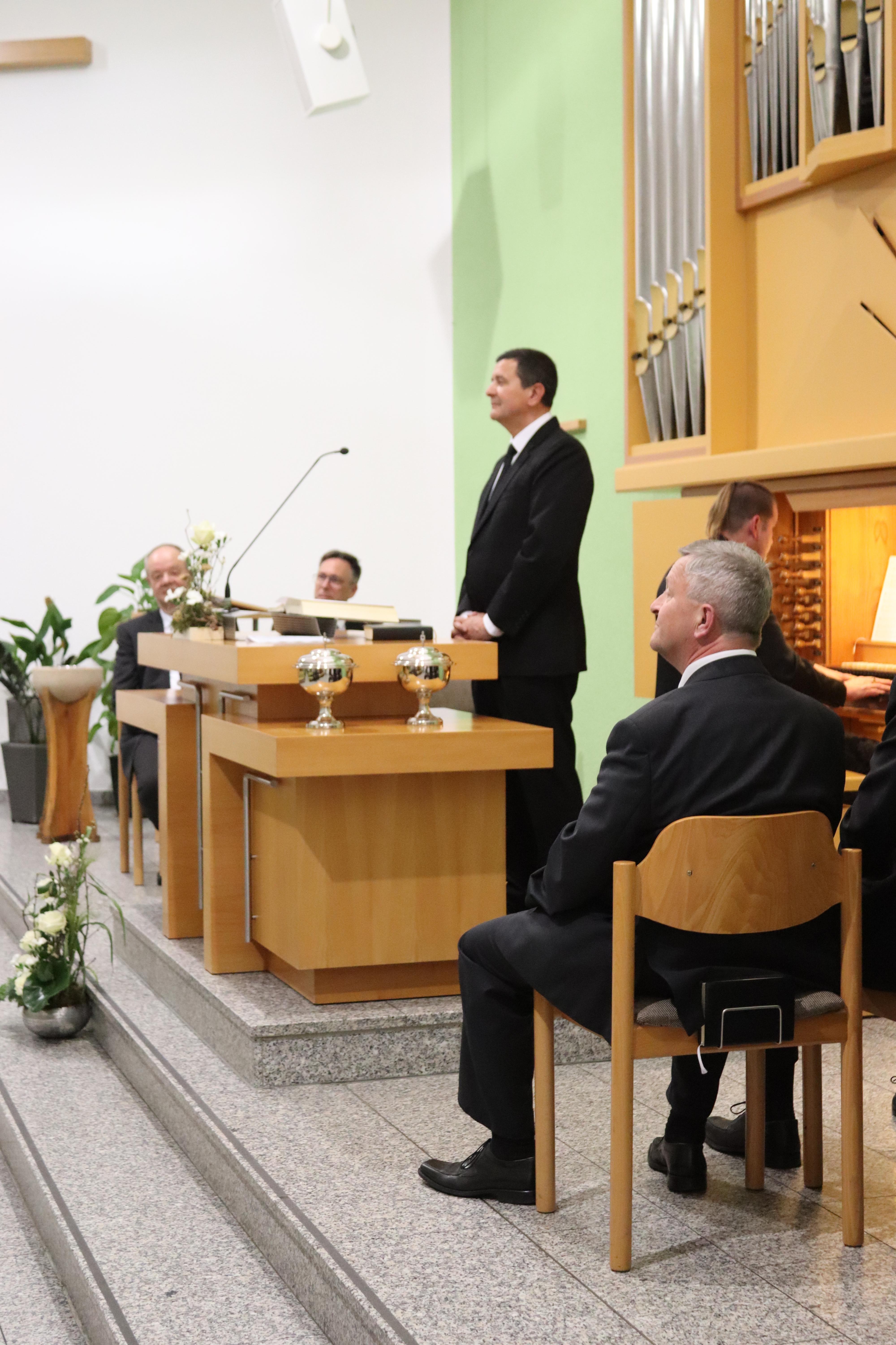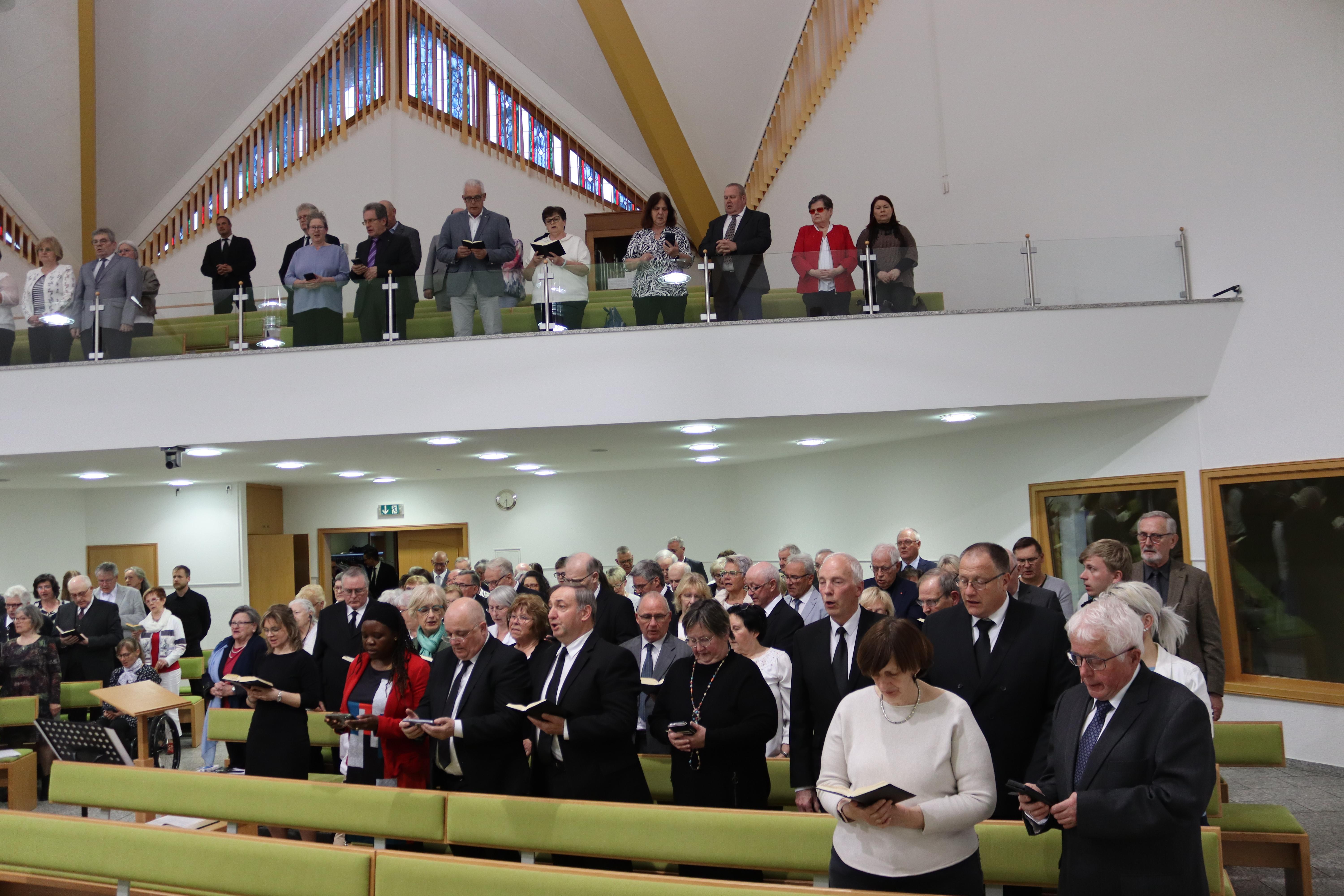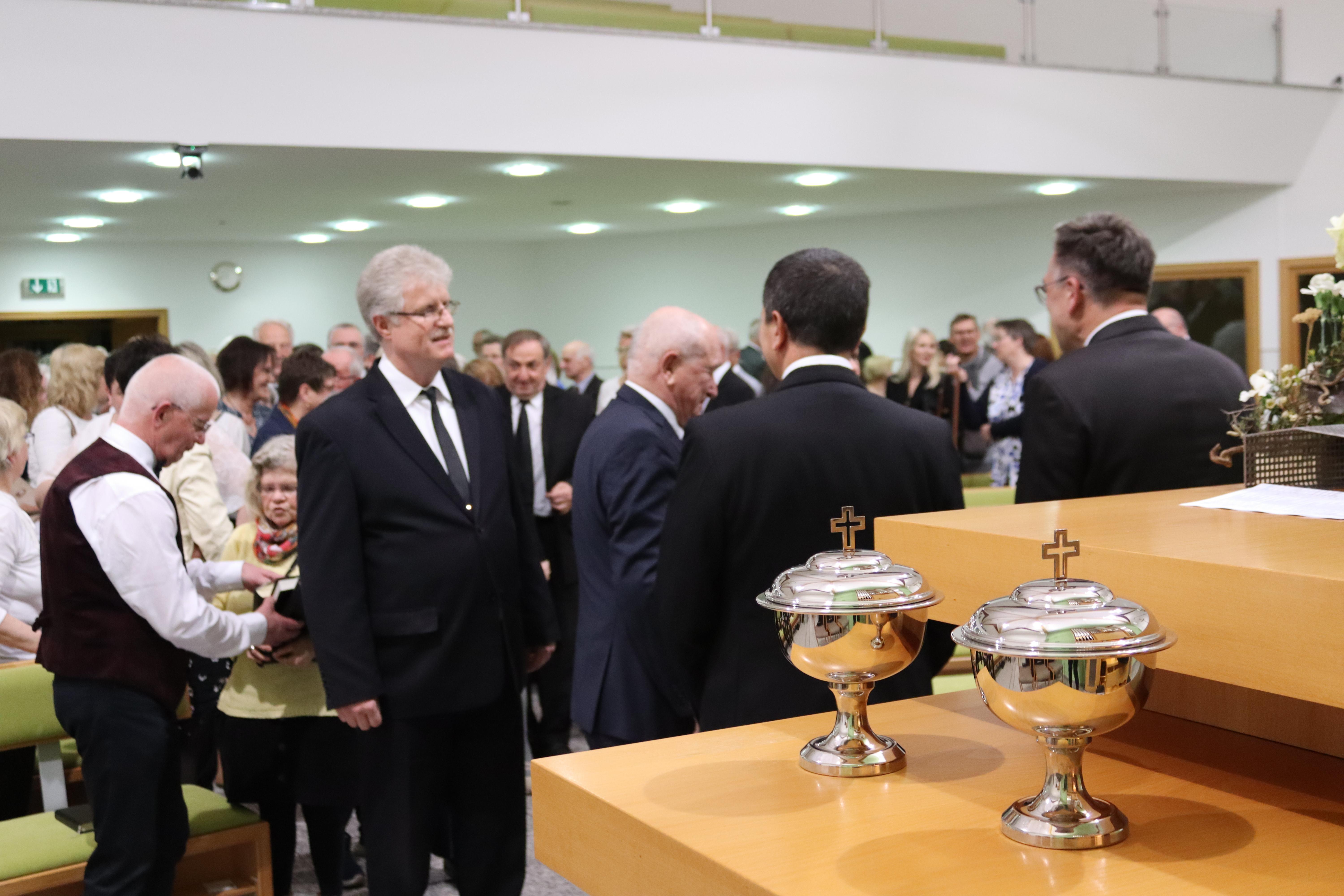Doch was so freundlich und vertraut begann, führte im Gottesdienst schnell in die Tiefe. Gemeinsam mit Apostel Mike Dietel diente Bezirksapostel David Heynes den Geschwistern mit dem Textwort aus Lukas 24,38 und lenkte den Blick auf die erschrockenen Jünger, denen der auferstandene Jesus begegnete: „Was seid ihr so erschrocken, und warum kommen solche Gedanken in euer Herz?“